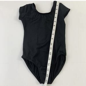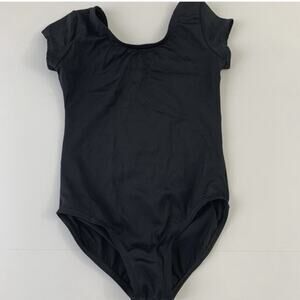 Balera black short sleeve leotard, great for gymnastics or dance. Good condition - minor wear, no fade (lighting makes black look faded). A small white spot that may wash out. Size small / 6.