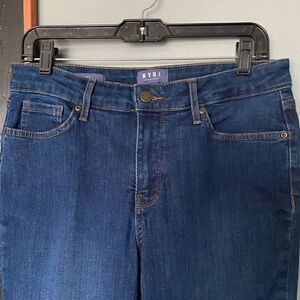 NYDJ skinny stretch jeans with lift & tuck technology size 6 in great condition. Waist approximately 15” flat, length is 28”, rise is 10”.