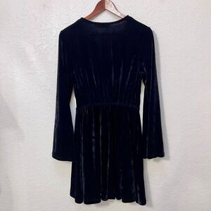 Rusttydustty Black Velvet Embroidered Boho Mini Dress Bell Sleeve Tassel NWT M