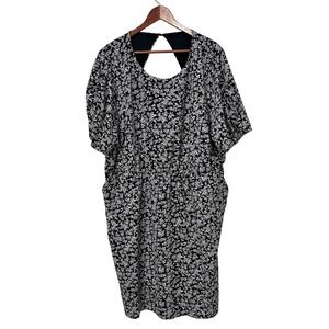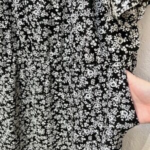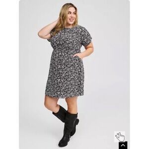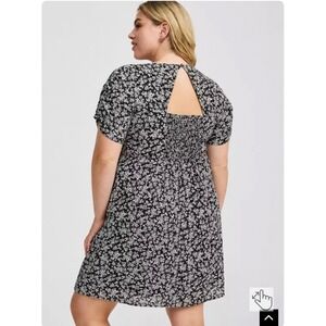 Torrid Black Ditsy Floral Short Sleeve Mini Dress with Pockets and Smocked Back