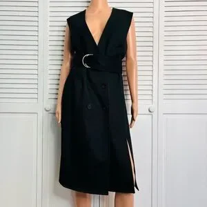 Details: CAROLINA HERRERA Belted Twill Black Midi Dress Size 10