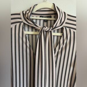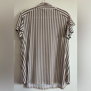 Adrianna Papell Women’s Striped Tie at Neck Flutter Short Sleeve Blouse Size 1X