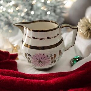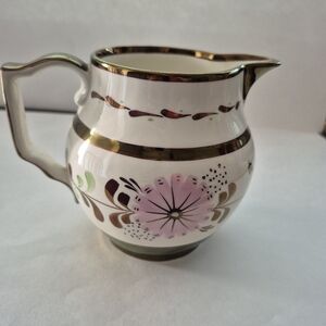 Elegant Gold and Pink Floral Lusterware Pitcher Creamer