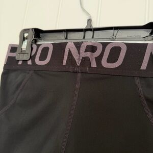 Women’s Nike Pro 3” Dri-Fit compression shorts size small. Black. Inseam is 3”. Some loose stitching on the top band, as shown in photos. Good pre-owned condition.