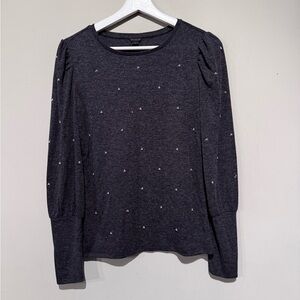 Ann Taylor blouse pearl embellishments puffed sleeves Office Casual Women XS
