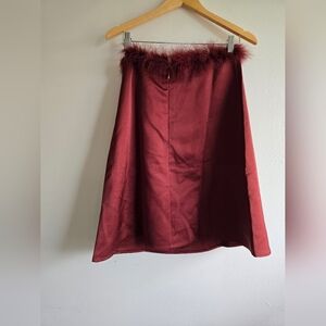 This mini dress has an A-line silhouette, detailed with ostrich feathers at the neckline. It comes in duchess satin with interior gripper tape along the top for support, on-seam pockets, and