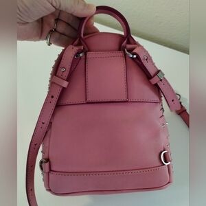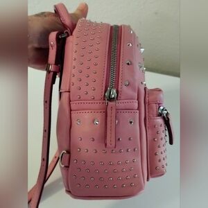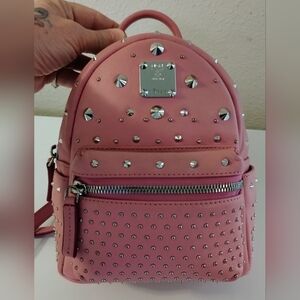 This beautiful pink and silver studded MCM micro mini backpack is simply adorable! She can be used as a shoulder bag too! She has pockets on both sides and a zip pocket on the front. She's in great pre-loved condition with a spot on the inside (shown in the pictures)!! The outside of the bag looks amazing!! The white tag is shown and indicates she's made in Korea. Please look at all of the pictures as they are part of the description!!