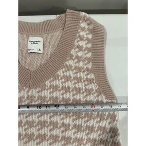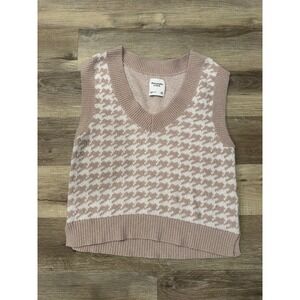 Abercrombie & Fitch Houndstooth Sweater Vest Tan White V-Neck Knit Medium