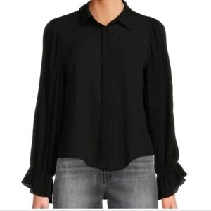 Area Stars Lee Blouse Pleated Puff Sleeve Button-Down Top, Black, Size XS NWT