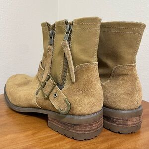 Women’s CAT Caterpillar Moto Zipper Work Boots Size 10/41 Camel Suede
