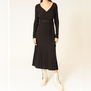 Area Stars Riley Midi Dress w Belth in Black Knit, Long Sleeve, Size Medium