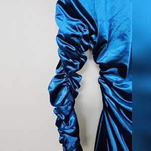 Play with color in this bright velvet ruched mini by Atlein. Style with a statement earring to your next cocktail party. NWOT!