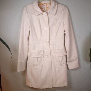 Anthropologie Tulle Winter White Wool Preppy Fall Feminine Classic Pea Coat M