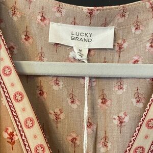 Lucky Brand Dress Womens Medium Tan Floral Cottage Boho Long Sleeve NEW NWT