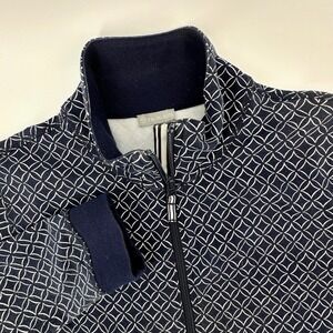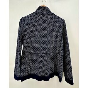 T by Talbots Womens Navy Geometric Full Zip Track Jacket Mock Neck VN5107 Size M
