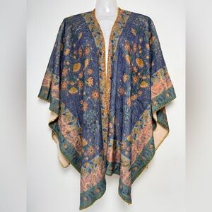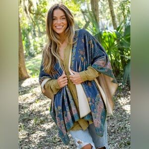 Natural Life 2-in-1 Cozy Shawl Scarf Warm Fuzzy Blue Green Floral One size