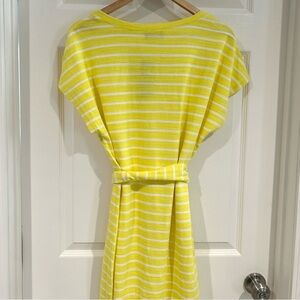 Lane Bryant NWT Women Yellow White Striped V-Neck Short Sleeve Dress with Belt Size 14/16 100% Cotton