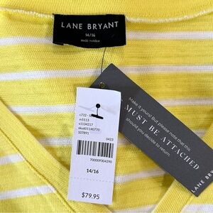 Lane Bryant Yellow Striped T Shirt Dress 14/16 NWT Cotton Short Sleeve V-Neck