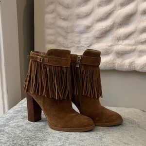Ivanka Trump Tan Suede Fringe Heeled Boots