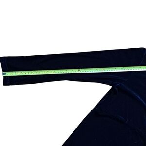 Timeless Gloria Vanderbilt black velvet dress with a sleek, elegant silhouette. Made from soft stretch velvet, this long sleeve midi dress hugs the body comfortably while remaining flattering and easy to wear.