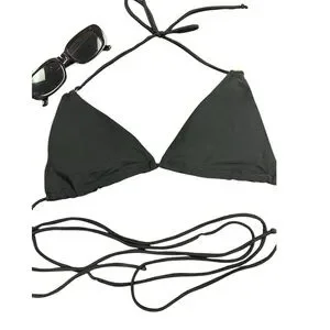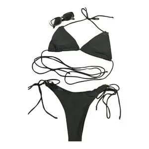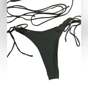 Stylish and sleek black triangle bikini set perfect for a day at the beach. Enjoy comfort and elegance with this must-have swimwear. New without tags, never worn. Gold accents
