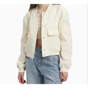 NWT JASON WU Women's Cream Button Up Bomber Jacker Size L