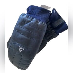 VINTAGE SARAMAC INSULATED BLUE LEATHER SKI MITTENS. One Size Fits up to Size XL