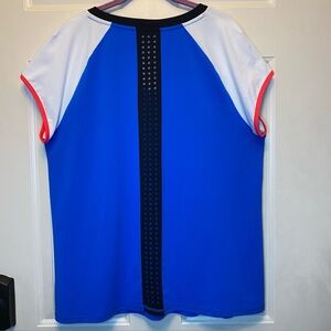 LIVI Active Athletic Top Blue White V-Neck Sz 14/16 Mesh Back Stripe