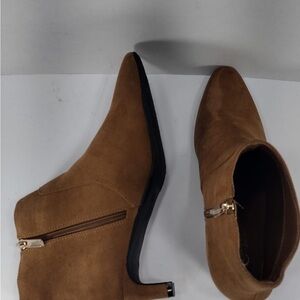 Step out in style with these sleek tan suede boots. Perfect for any occasion, these boots offer both comfort and elegance.