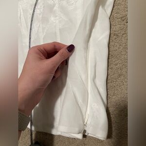 Elegant white puff sleeve top perfect for any occasion. Features a flattering neckline and stylish design. Zips up the side