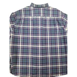 The Daniel Cremieux Button Down Shirt in size 3XL is a classic fit, long sleeve shirt made from 100% cotton fabric with a blue, white, and red plaid pattern. It features a collared neckline and button closure and is suitable for occasions like travel, casual wear, and workwear. This breathable shirt is machine washable and perfect for all seasons, offering a western or preppy style with its classic design. In excellent condition, this high-quality shirt is a versatile addition to any man's wardrobe.