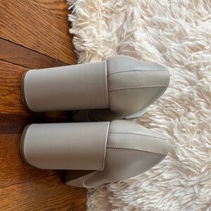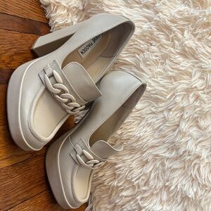 Chic beige loafers with a bold chain detail. Perfect blend of style and comfort.