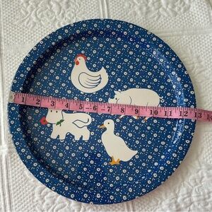 Farm Animal Metal Serving Tray Decor Cow Pig Chicken Duck Blue White Set of 2