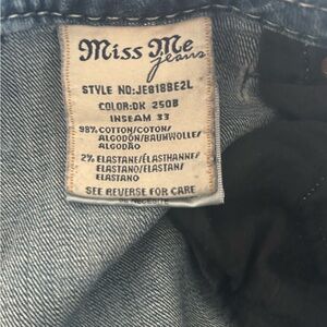 • Silver-tone hardware with Miss Me logo buttons and rivets