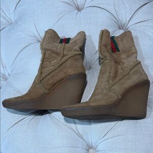 Gucci Brown Suede Wedge Boots