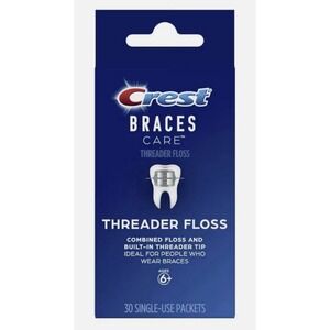 ONE (1) package of NEW, UNUSED, Crest BRACES CARE THREADER FLOSS, 30 single use packets