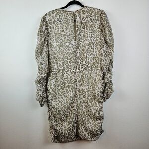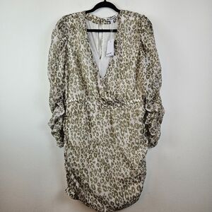 Stylish mini dress with leopard print. Features long sleeves and a V-neckline. Perfect for a chic look.
