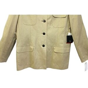 NWT Danielle Martin Women 12 Blazer Jacket Long Sleeve Work Linen Beige Lining