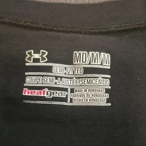 Experience the perfect blend of style and comfort with this Under Armour black fitted t-shirt. Featuring a striking graphic design, this short sleeve tee is crafted from high-performance fabric, making it ideal for both casual wear and athletic activities.
