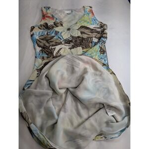 Style: Vintage Petite Sophisticate Dress Floral Tropical Hawaiian Vacation Midi Romantic Feminine Y2K 2000s Pullover Sleeveless