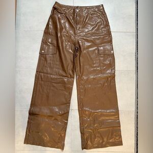 Stylish brown Magnolia Boutique faux leather cargo pants. Features multiple pockets for convenience.