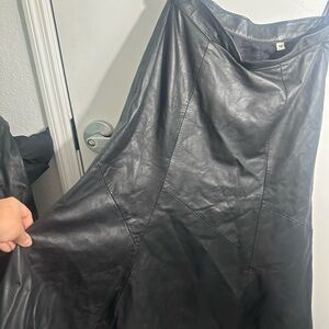 Elevate your style with this chic black leather A-line skirt. Perfect for adding a touch of sophistication to any outfit.