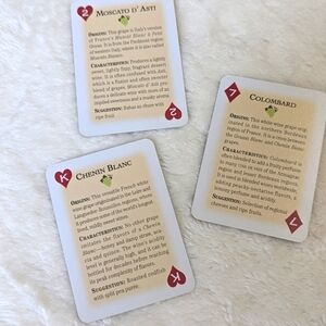 each card has a different type of wine not with the information about the wine