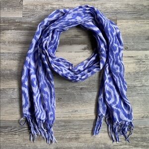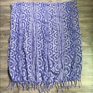 Good condition - Women's Patterned Scarf With Fringe Ends. Colors: light purple and white.