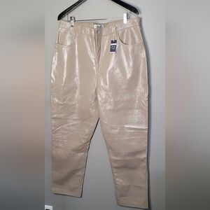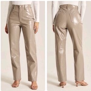 Abercrombie Curve Love 90s Straight High Rise Tan Vegan Leather Pants NWT 18R