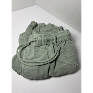 C&C California Women's Blue Linen Blend Cropped Wide-Leg Pants, Size Small Green