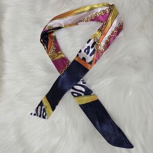 Elegant Multicolor Silk Hair Or Bag Scarf