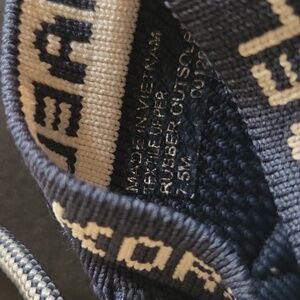 Color and Design: Navy blue with silver metallic trim and red accents, featuring a high-top, lace-up style with a hidden wedge heel.