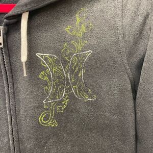 Womens Hurley 2000s Y2K Emo Grunge Grey H Floral Vines Zip Up Hoodie Size S