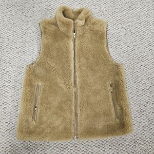 J Crew Women’s Plush Fleece Excursion Vest Size Medium Light Brown Cognac Teddy